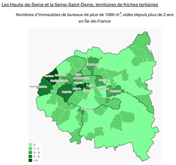 En 2025, ImmoStat recense 5,6 millions de m2 vacants en Ile-de-France, contre 2,7 millions de m2 en 2020.