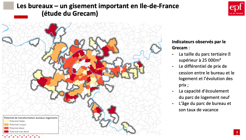"La transformation de bureaux en logements nous paraît mûre pour connaître une logique de massification, et être ainsi considérée comme un gisement foncier à part entière" . Guillaume Terraillot, Directeur général adjoint, EPFIF (étude ORIE, février 2025).