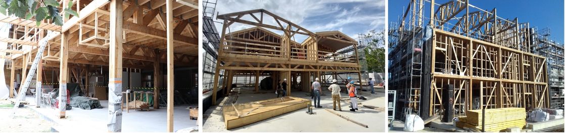 Les participants ont eu la possibilité de produire des briques de terre crue moulées (adobes), une charpente traditionnelle en bois, des bardages en bois brûlé, un mur porteur en paille.