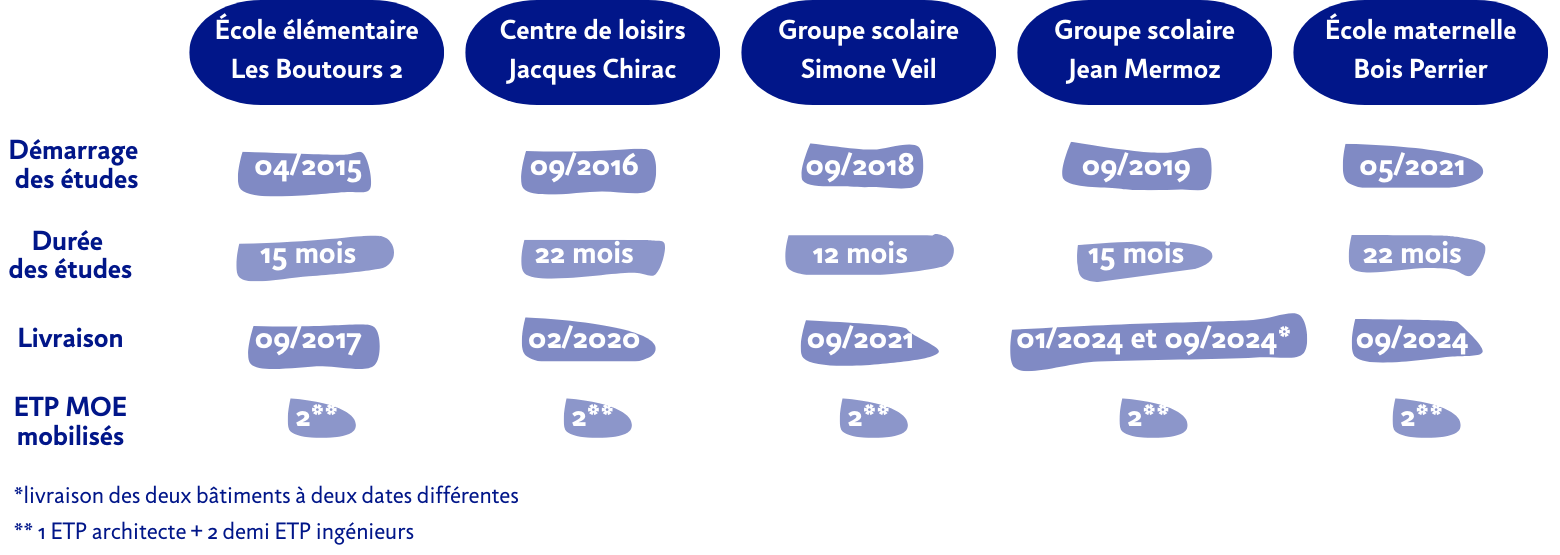 À la même époque, la ville s’est retrouvée en déficit de classes suite à la création d’une ZAC autour de la gare de Rosny-sous-Bois. Pour répondre à cette urgence, Emmanuel Pezrès – architecte, ingénieur territorial et Directeur adjoint des Bâtiments à l’époque – a proposé, avec un collègue, d'assurer en interne la maîtrise d’œuvre d’un nouvel équipement scolaire : l’école maternelle Les Boutours 1, livrée en 2014. Dès lors, la DRI a été sollicitée pour concevoir d’autres établissements scolaires.