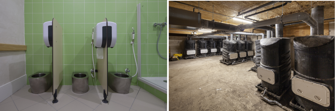 Des toilettes sèches ont été installées dans trois établissements. Dans le cas du centre de loisirs Jacques-Chirac, l’urine n’est pas collectée : elle est directement évacuée vers le réseau des eaux usées. Les matières fécales, quant à elles, sont stockées dans des composteurs situés juste sous les cuvettes, dans un local technique dédié. Ces bacs se remplissent plus lentement que prévu, car la décomposition y est particulièrement efficace. Il est même possible qu’ils n’aient jamais besoin d’être vidés.