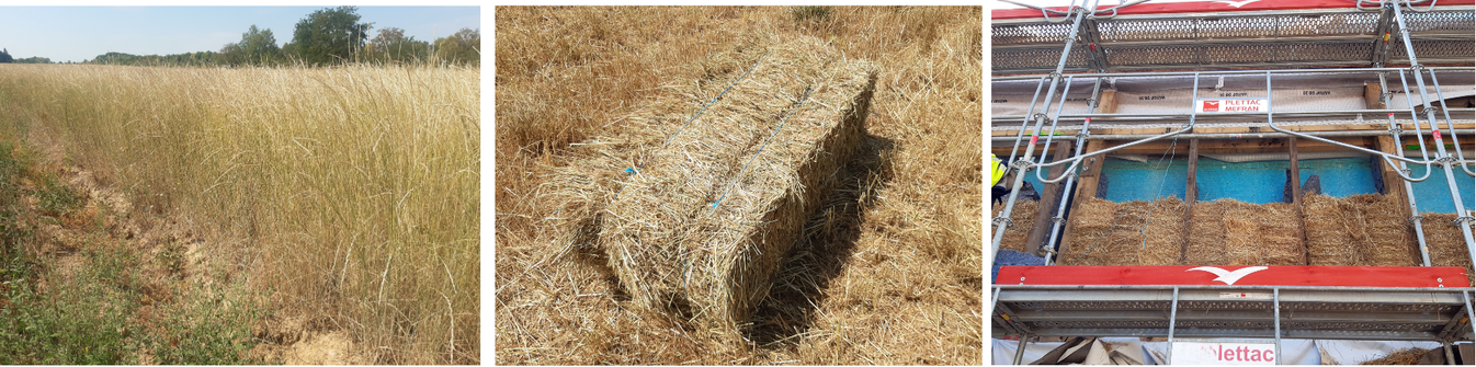 Le Land Institute s’appuie sur un réseau international de laboratoires. Grâce à ce réseau, la DRI a pu récupérer des graines auprès de l’ISARA (Auvergne-Rhône-Alpes) et a lancé un marché afin d’identifier un agriculteur prêt à les cultiver. Des premiers essais ont été réalisés en Normandie, non sans difficultés. L’agriculteur est parvenu à produire quelques bottes, mais en quantité insuffisante. La DRI s’est donc tournée vers le réseau d’agriculteurs travaillant avec l’ISARA et a pu racheter leurs surplus sur deux récoltes. Les tests de bottelage se sont révélés concluants, permettant ainsi d’utiliser ces bottes sur le projet de la maternelle Bois-Perrier.