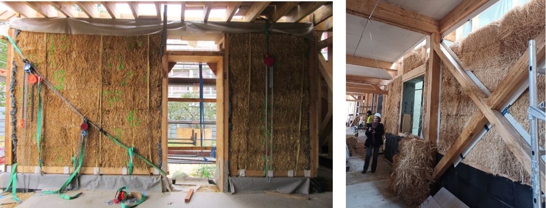 La DRI s’est rapprochée du Réseau Français de la Construction Paille (RFCP), d’entreprises spécialisées dans la construction biosourcée (APIJ Bat et notamment Rémi Beauvisage, pionnier en éco-construction et en intensité sociale) ainsi que d’un architecte et d’un ingénieur suisses reconnus pour leur expertise dans la construction en paille (Werner Schmidt et Peter Braun). Ces collaborations ont permis à l’équipe de renforcer ses connaissances.