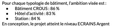 Ambitions retenues
