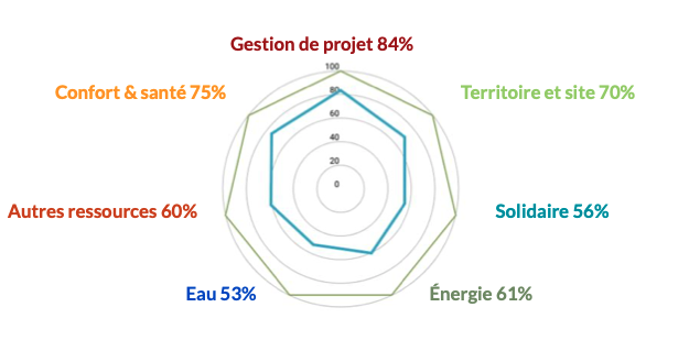 - Qualité d'air intérieur : VMC double flux, débits +20% par rapport à la réglementation, matériaux à faibles émissions