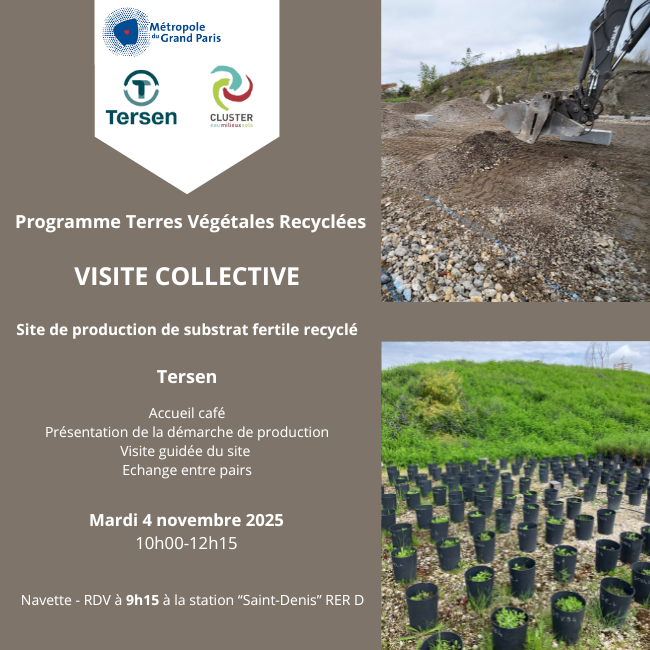Dans le cadre du programme Terres végétales recyclées , qui sensibilise et accompagne les collectivité de la Métropole du Grand Paris à leur intégration dans les projets de renaturation, cette quatrième visite collective s'intéresse au site de production de Tersen à Louvres.